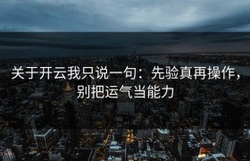 关于开云我只说一句:先验真再操作,别把运气当能力