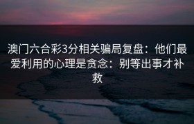 澳门六合彩3分相关骗局复盘:他们最爱利用的心理是贪念:别等出事才补救 开篇一句话说清楚:近期围绕“澳...