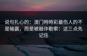 说句扎心的:澳门時時彩最伤人的不是输赢,而是被敲诈勒索——这三点先记住。 很多人把赌输的钱视为最大的...