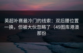 英超补赛最冷门的线索:双后腰位置一换,但被大伙忽略了(49图库港澳那份 在一场被视为“补场”的英超比...