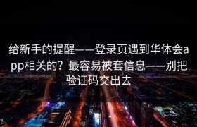 给新手的提醒——登录页遇到华体会app相关的?最容易被套信息——别把验证码交出去 不少新手在使用各类...