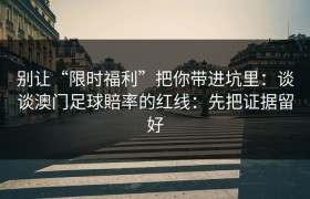 别让“限时福利”把你带进坑里:谈谈澳门足球賠率的红线:先把证据留好